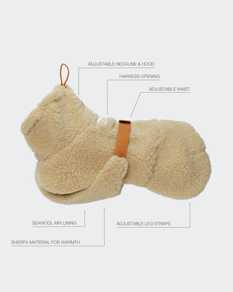 Kuschelig, warm und funktional – dieser Wintermantel ist der perfekte Begleiter für kalte Tage. Das weiche Sherpa-Material sorgt für besonderen Komfort, während das innovative Seawool Futter (eine nachhaltige Mischung aus recyceltem Polyester und Meeresfasern) auch bei Nässe zuverlässig wärmt.